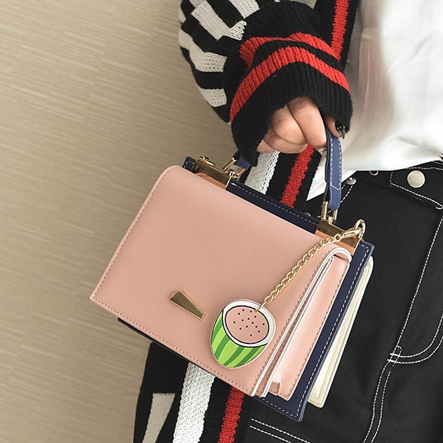 Womens Chain PU Top Handle Bag Solid Color Blushing Pink /